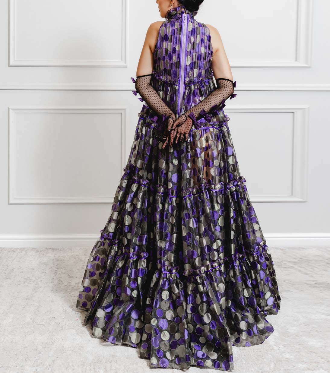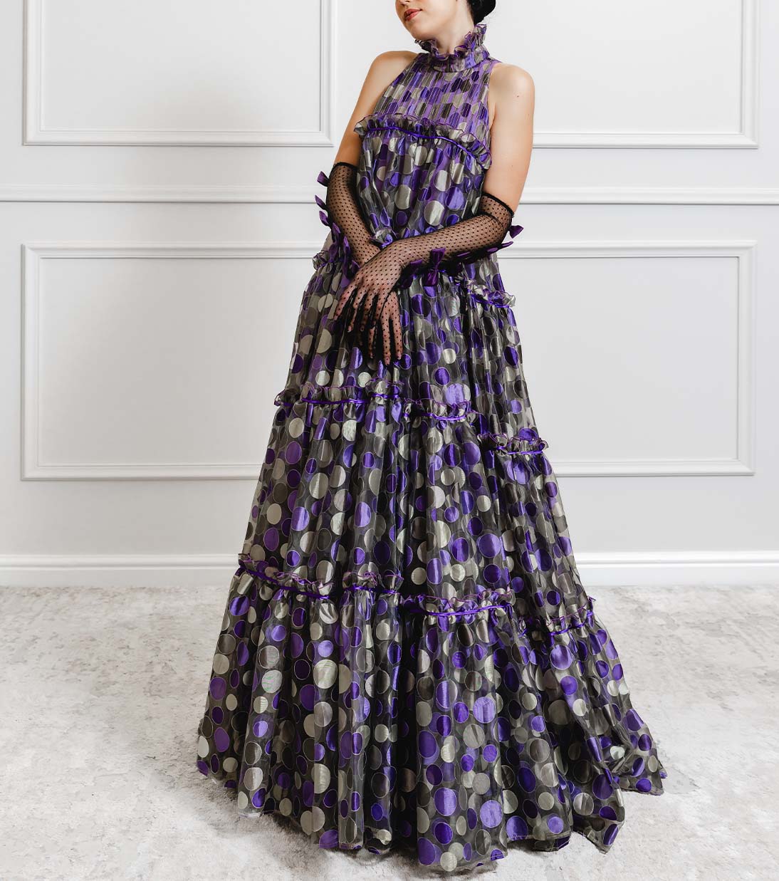R2 300,00Marcelle Trapeze Tiered Polka-Dot Organza Gown