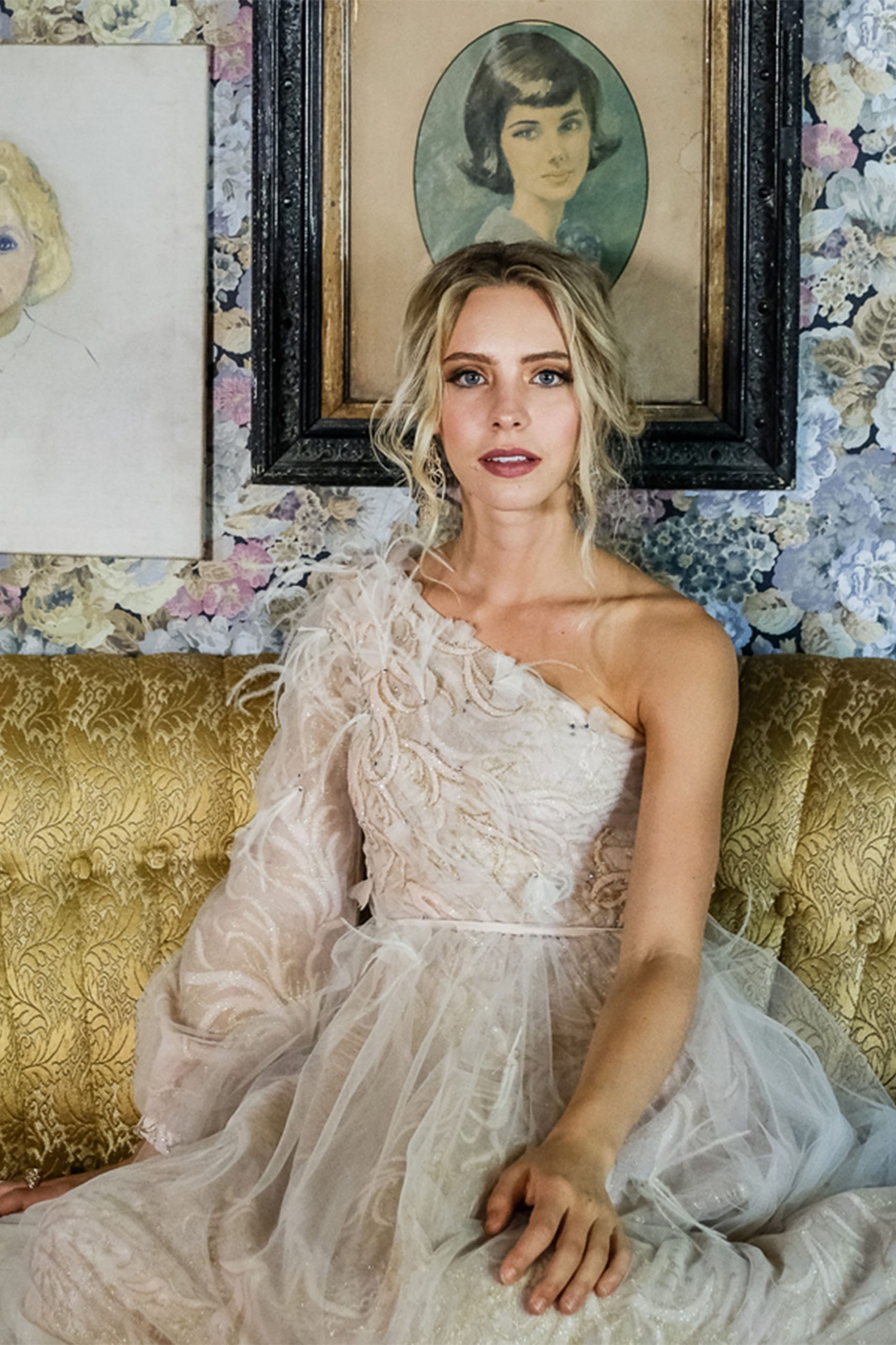 This trend of fabric-layering resulted in my muse being swathed in ethereal layers of delicate embroidery, tulle, fluttering ostrich feathers and intricate scatter beading.