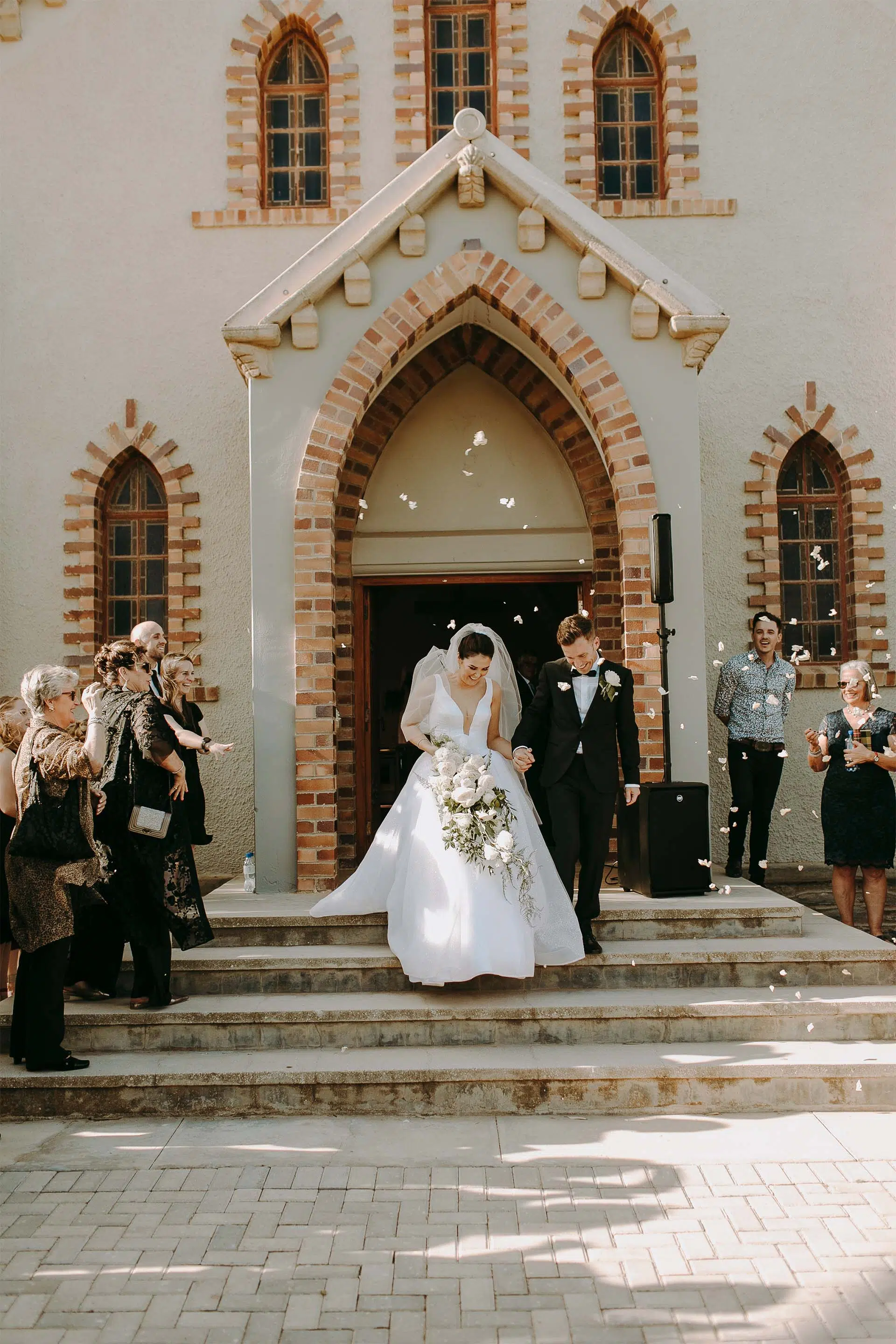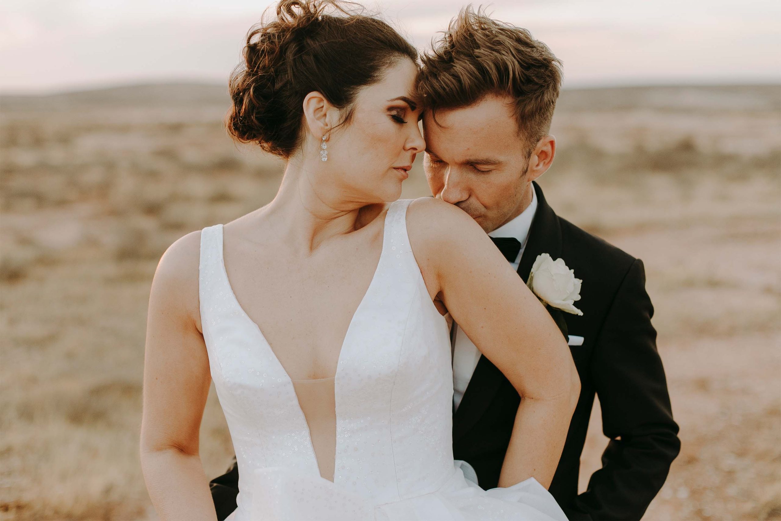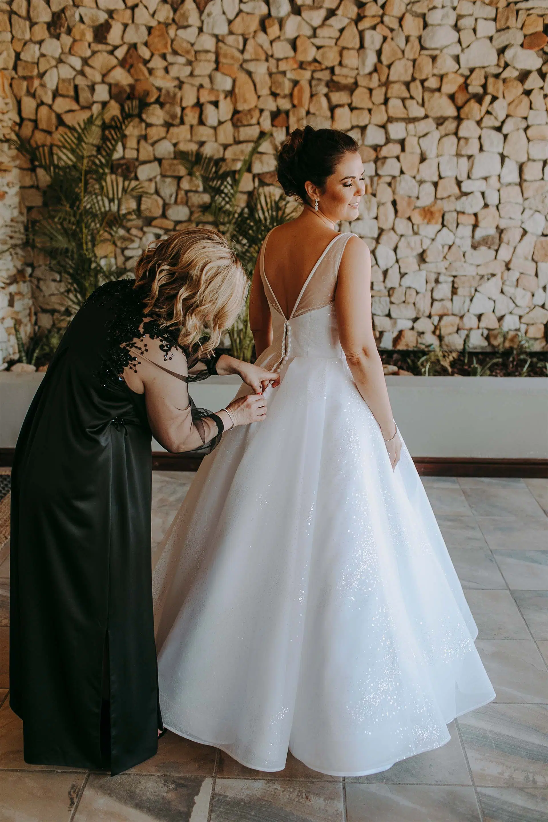 Elze-Mari’s wedding gown was a beautiful fusion between simplicity, elegance and architectural structure. We used a translucent, delicate embroidery decorated with shimmering flat sequin in combination with structured tulle and Duchess satin to create a sheer and light, yet sculptural bell silhouette.