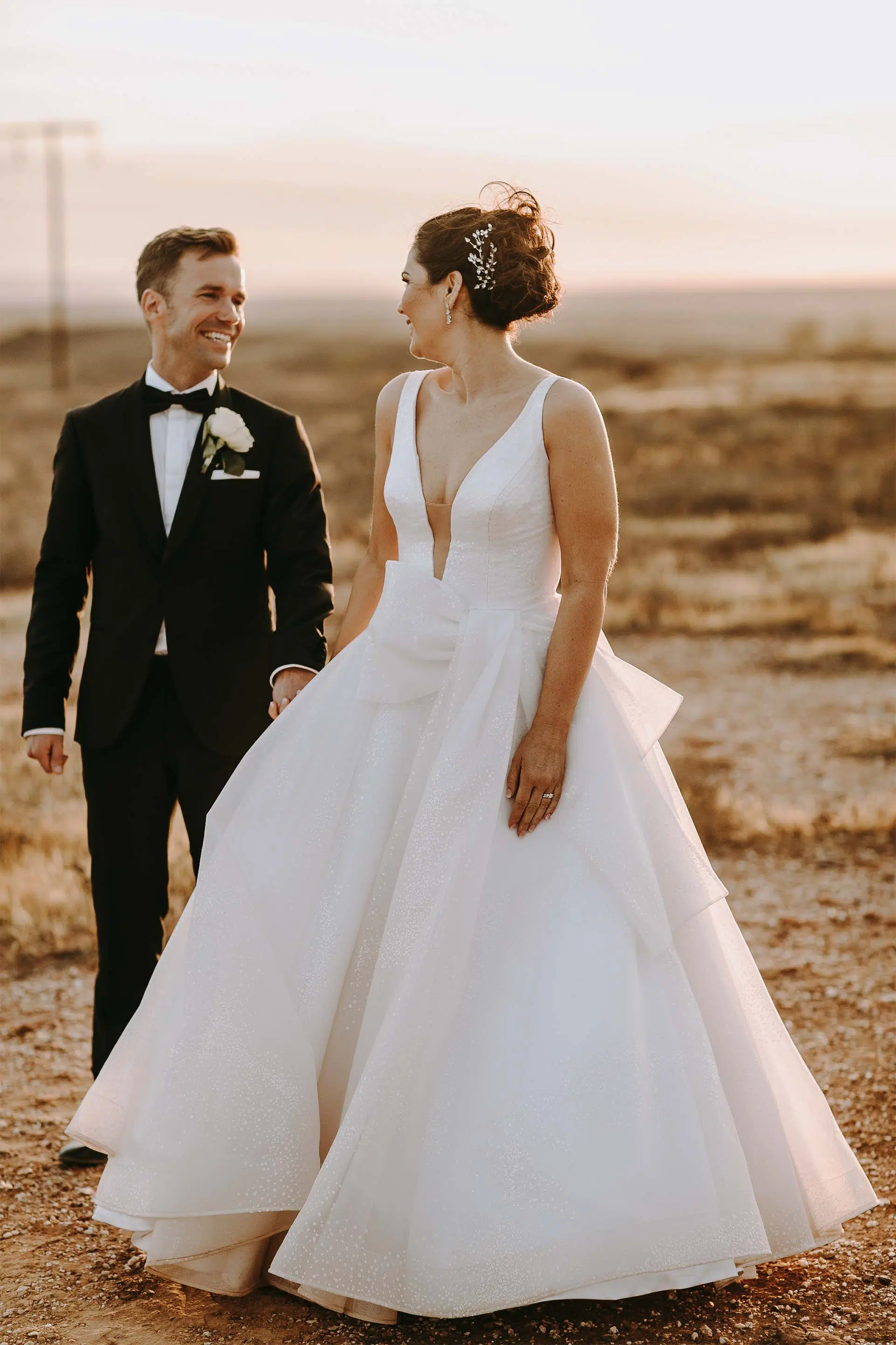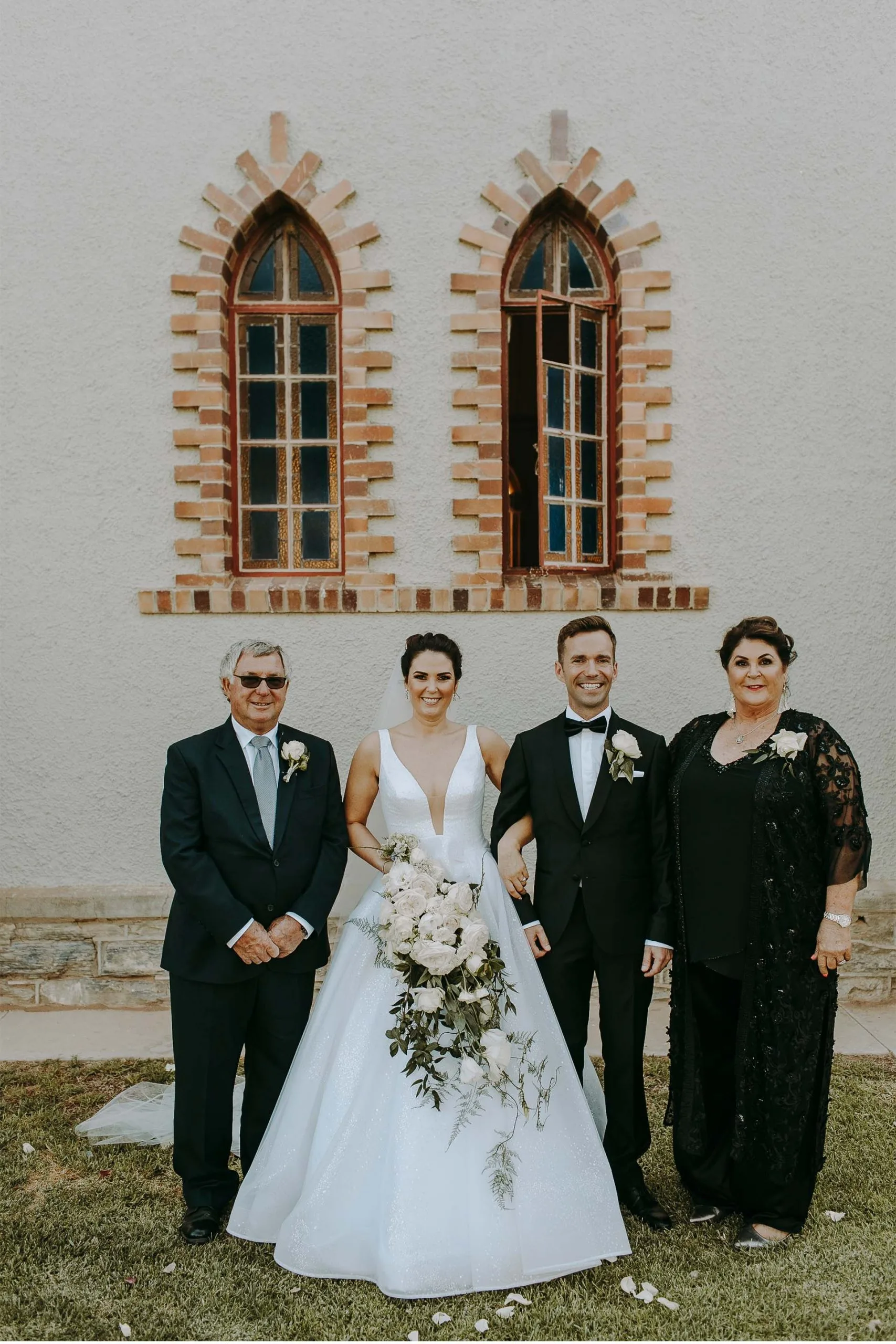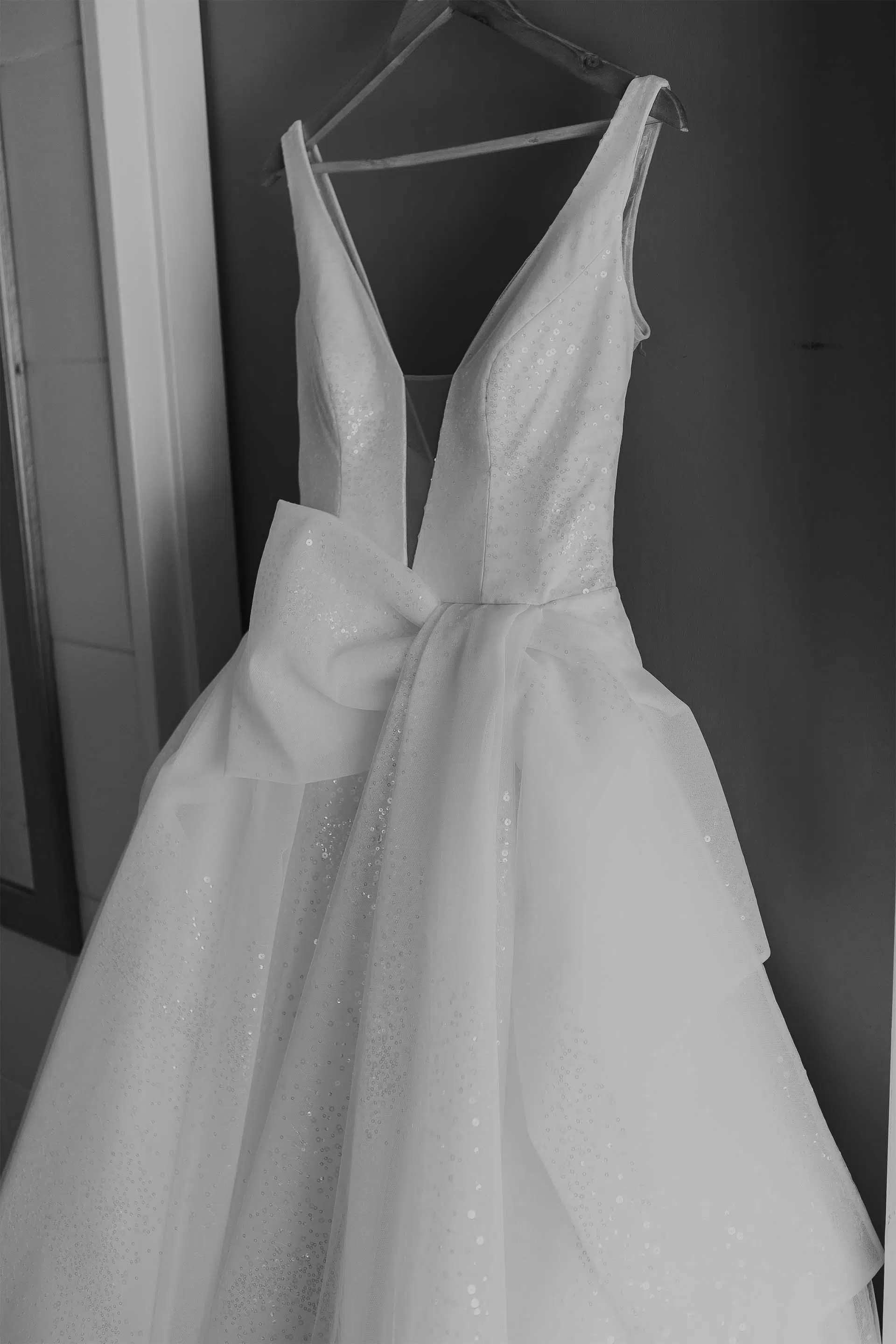 Besides the silhouette, we added an abstract bow detail for interest and drama. We also had the privilege of creating both the Mother-of-the-Bride and Maid-of-Honour ensembles.