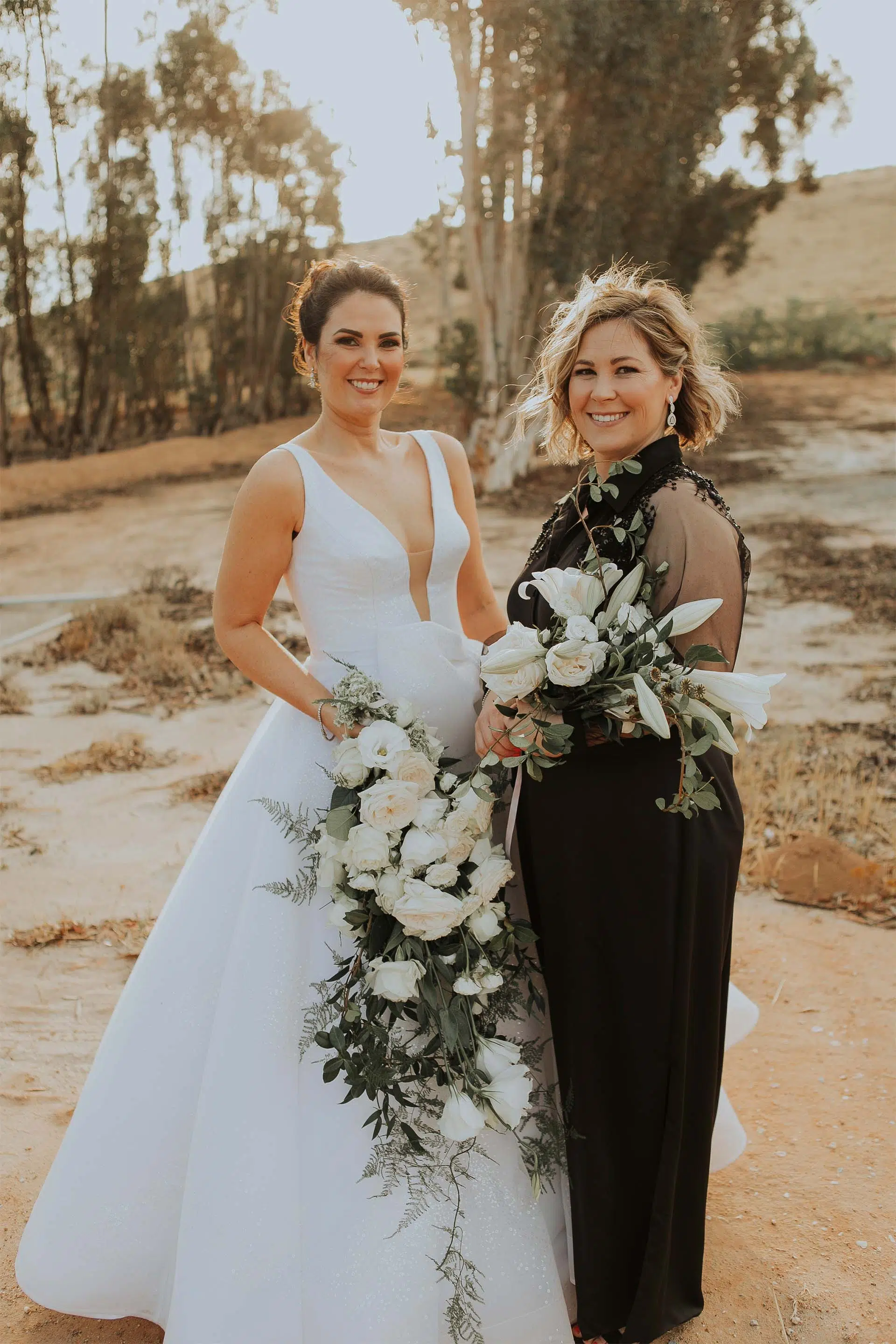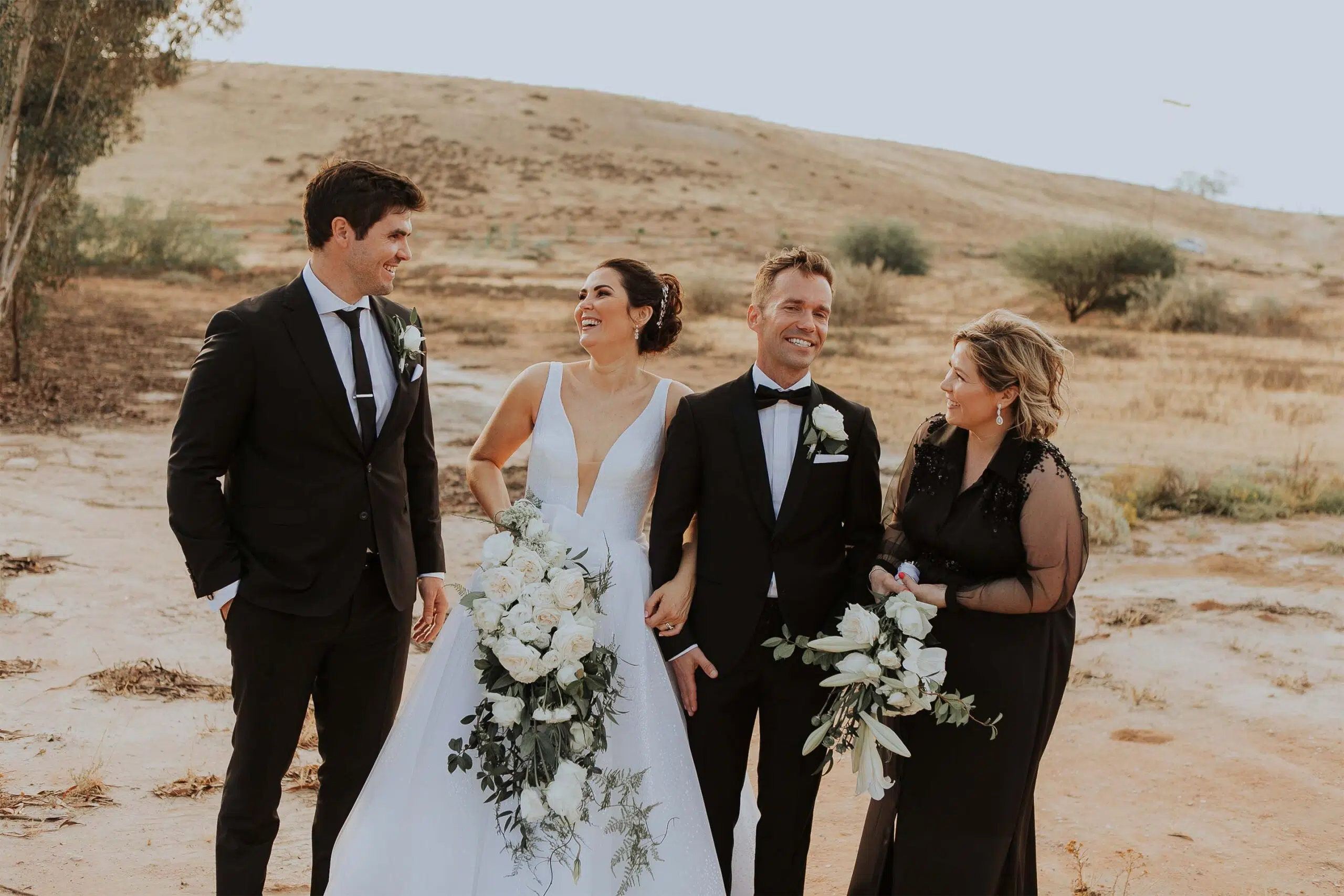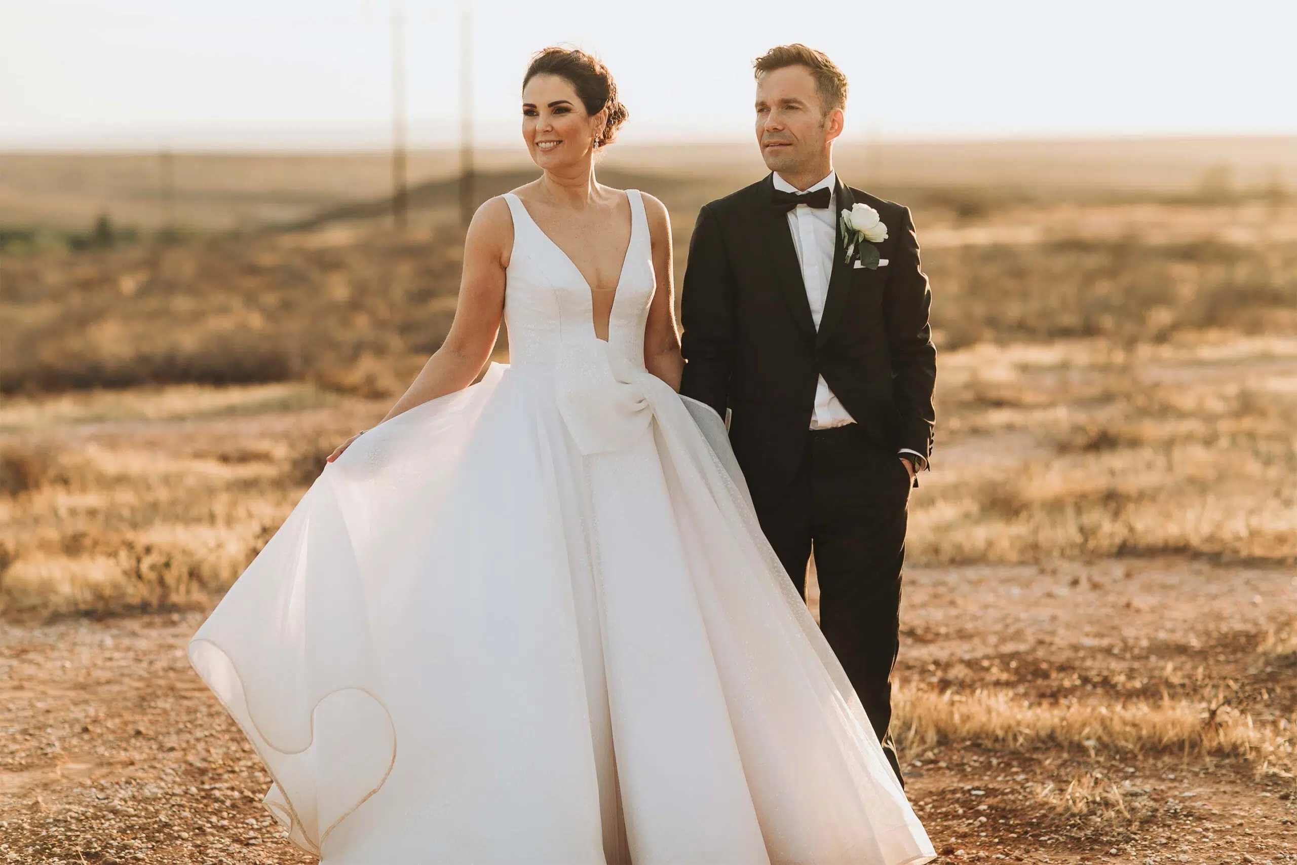 Besides the silhouette, we added an abstract bow detail for interest and drama. We also had the privilege of creating both the Mother-of-the-Bride and Maid-of-Honour ensembles.