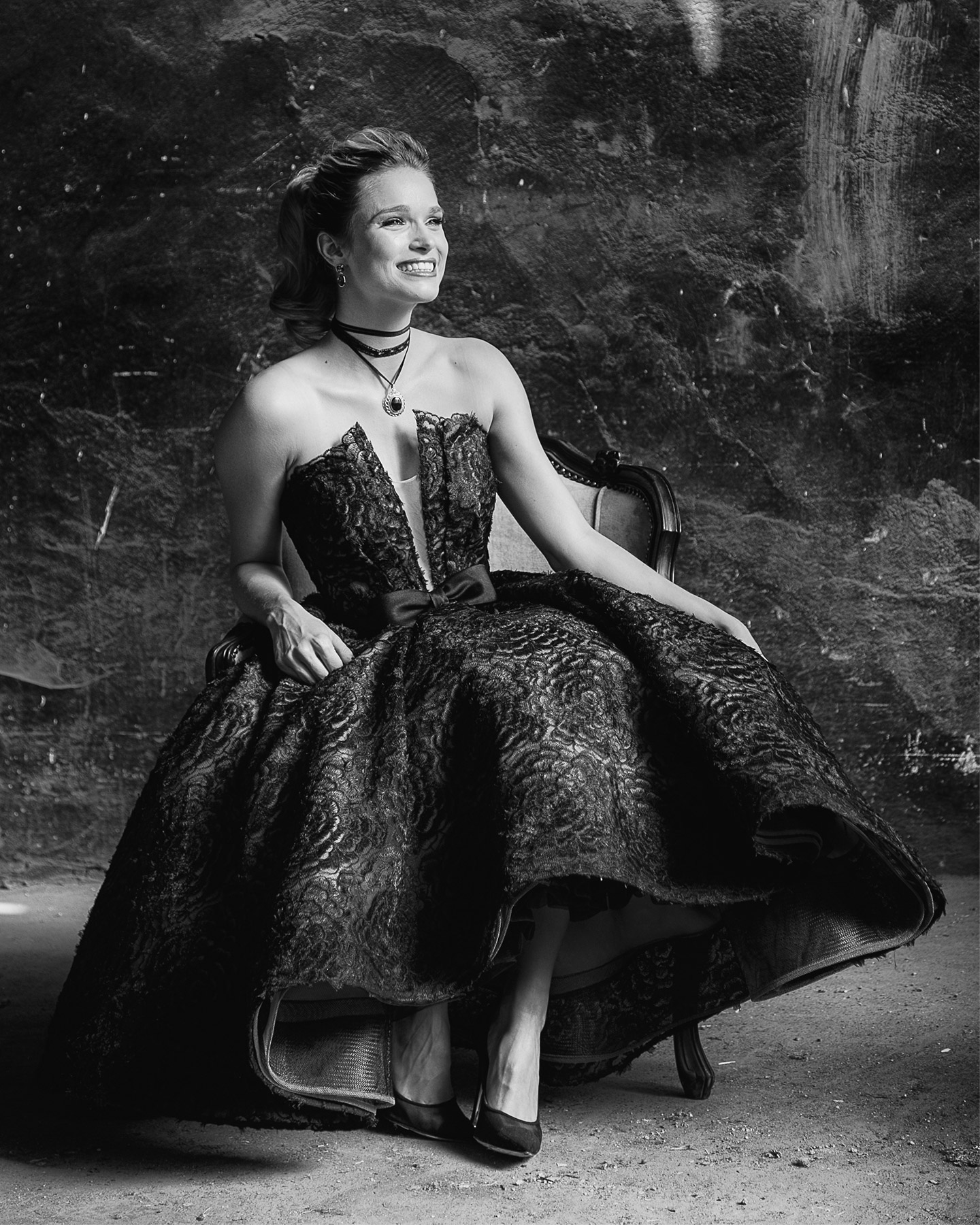 Ironically, for this editorial, it just so happened that the enchanting couture confections of tulle, corded lace, rose embroideries and ruffled crinoline hems ruled gracefully in the halls of a once-thriving tanning factory on the outskirts of Cape Town.