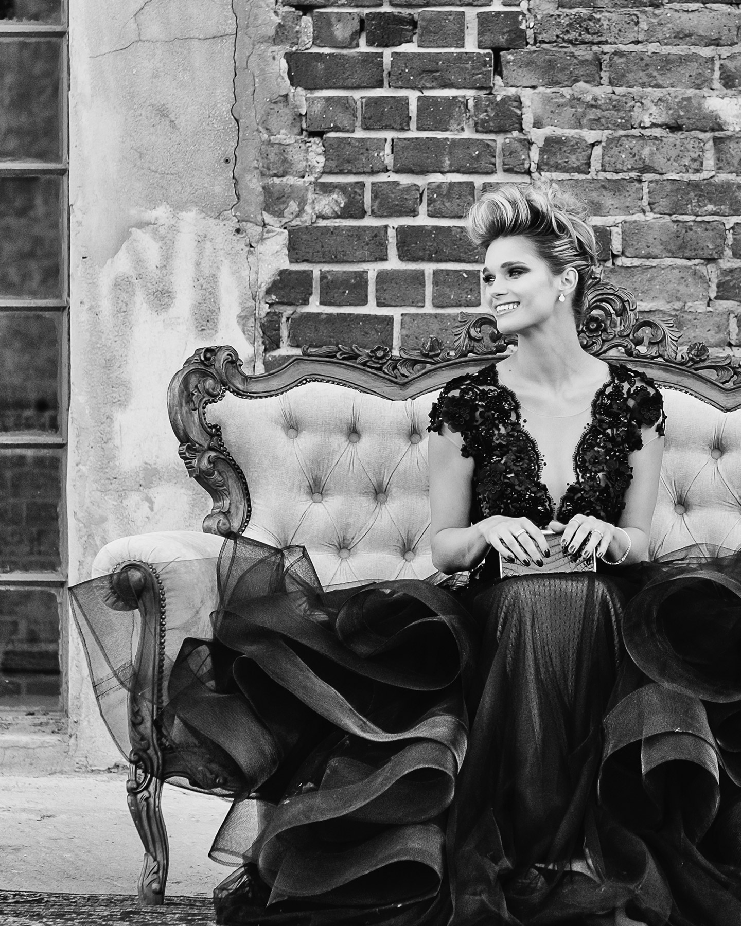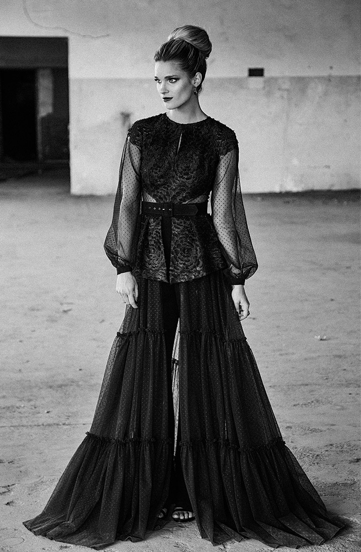 This enigmatic space, which consists of bare rustic industrial galleries, holds a certain mystery of decades gone by. Derelict, ruined suites are the perfect foil to flaunt the muse styled with bespoke handcrafted couture ensembles, fine jewellery and luxury leather accessories.
