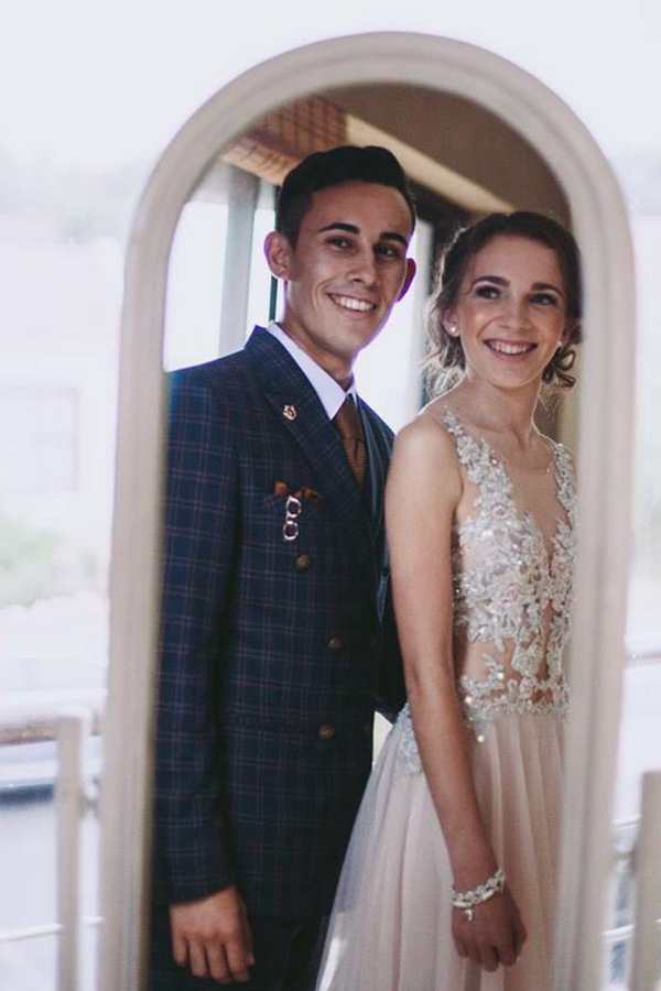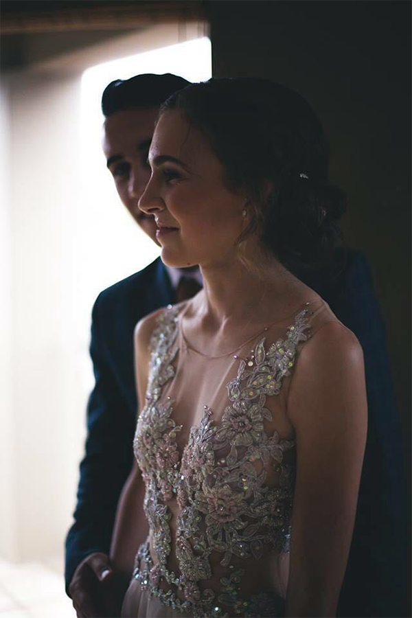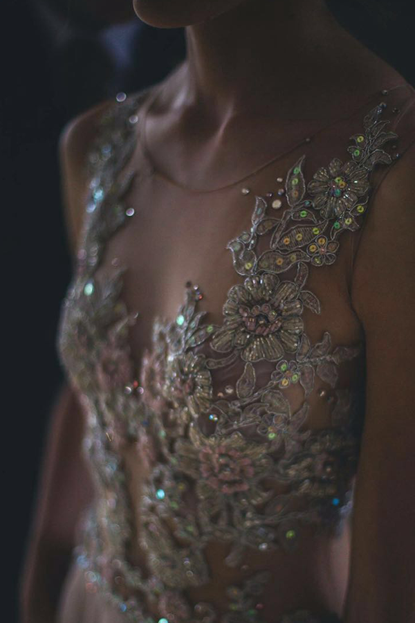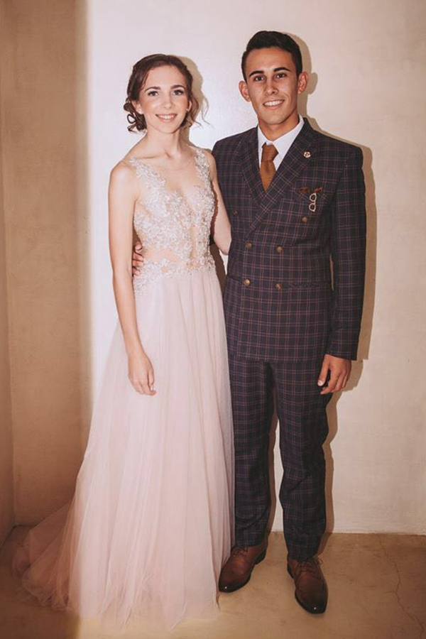 MATRIC FAREWELL 2016, Tableview High School. Illusion bodice with handbeaded detailed appliques with Swarovski crystal scatters, flowing into multiple layers of Italian tulle cut with a train. Covered button detail on center-back.