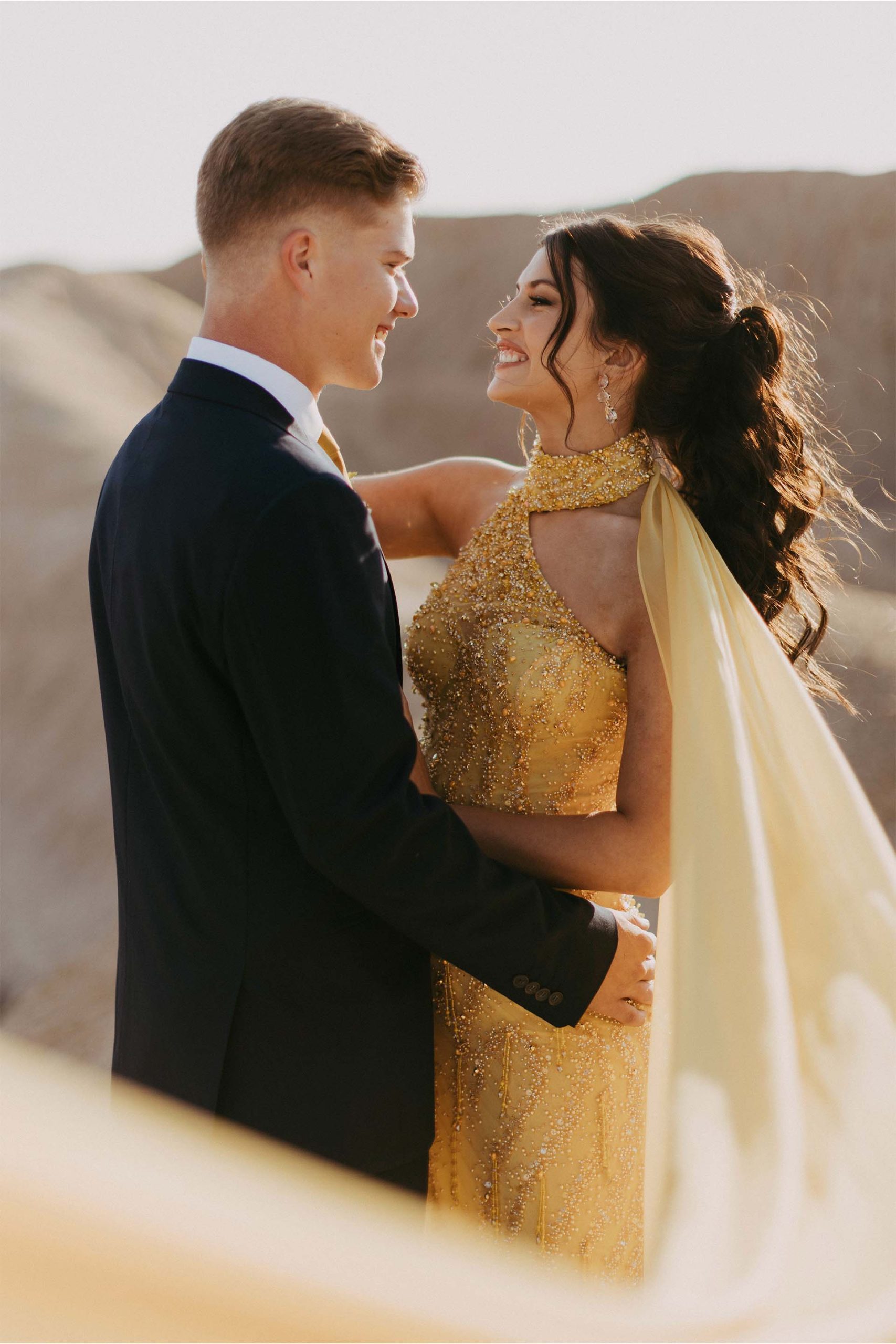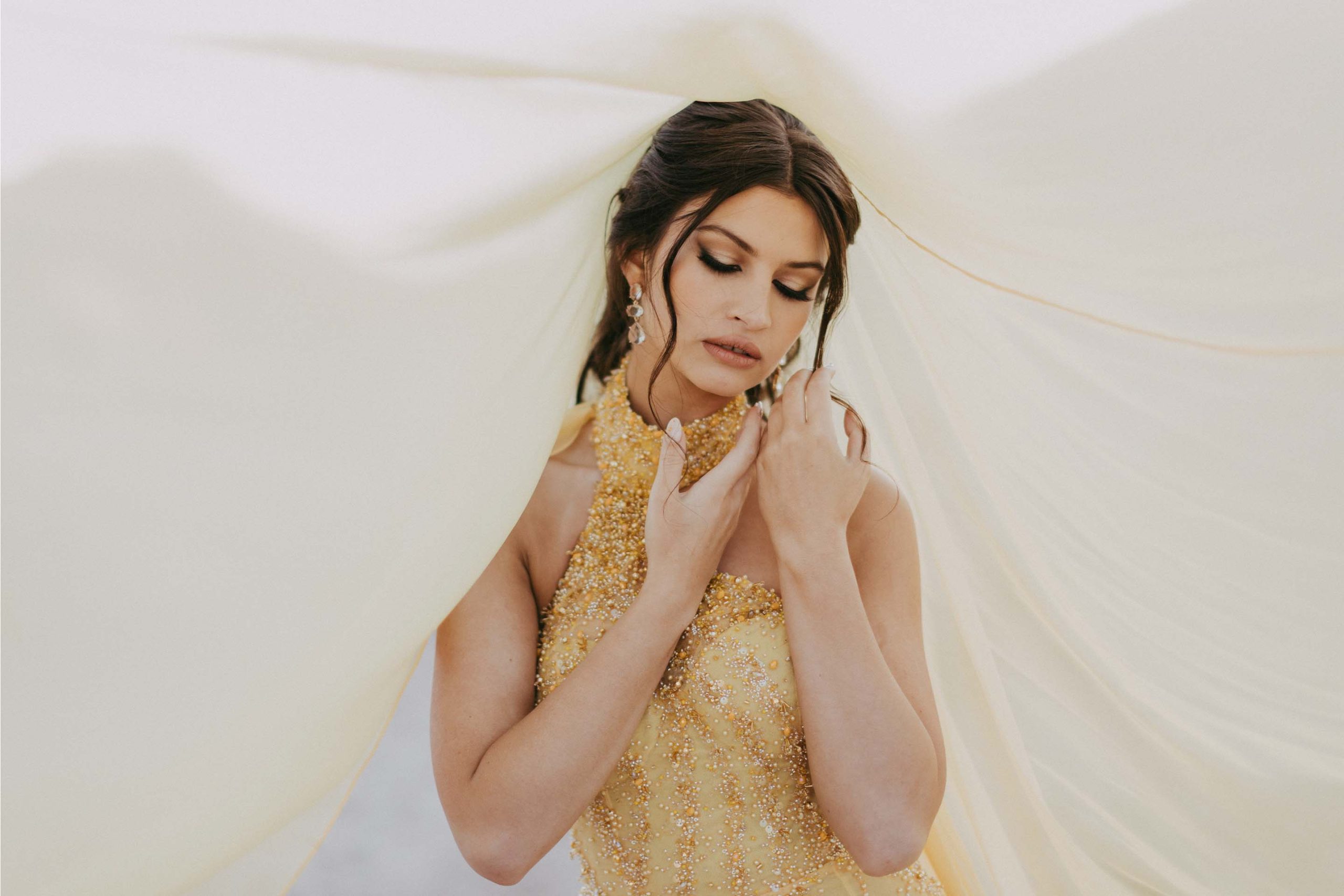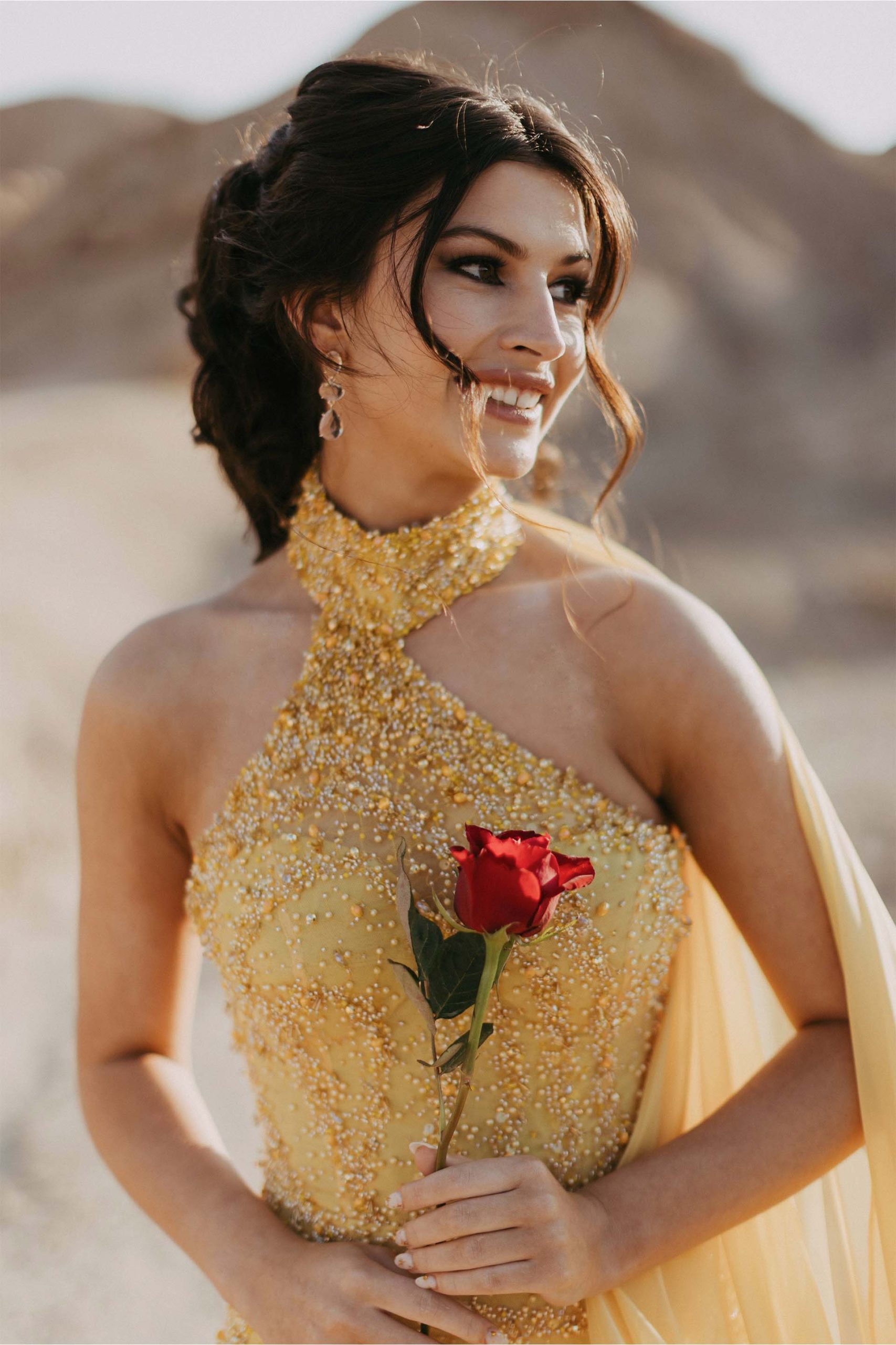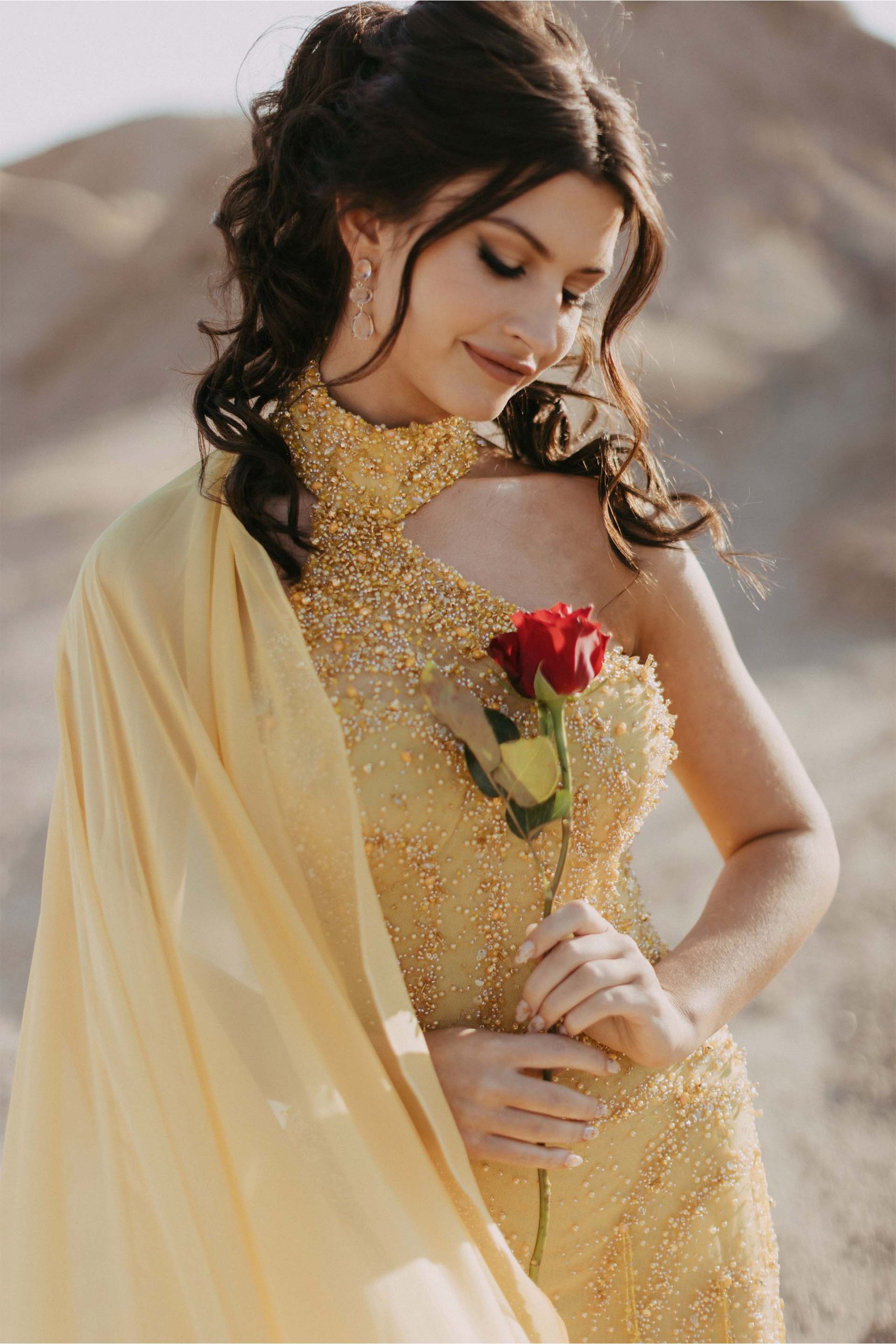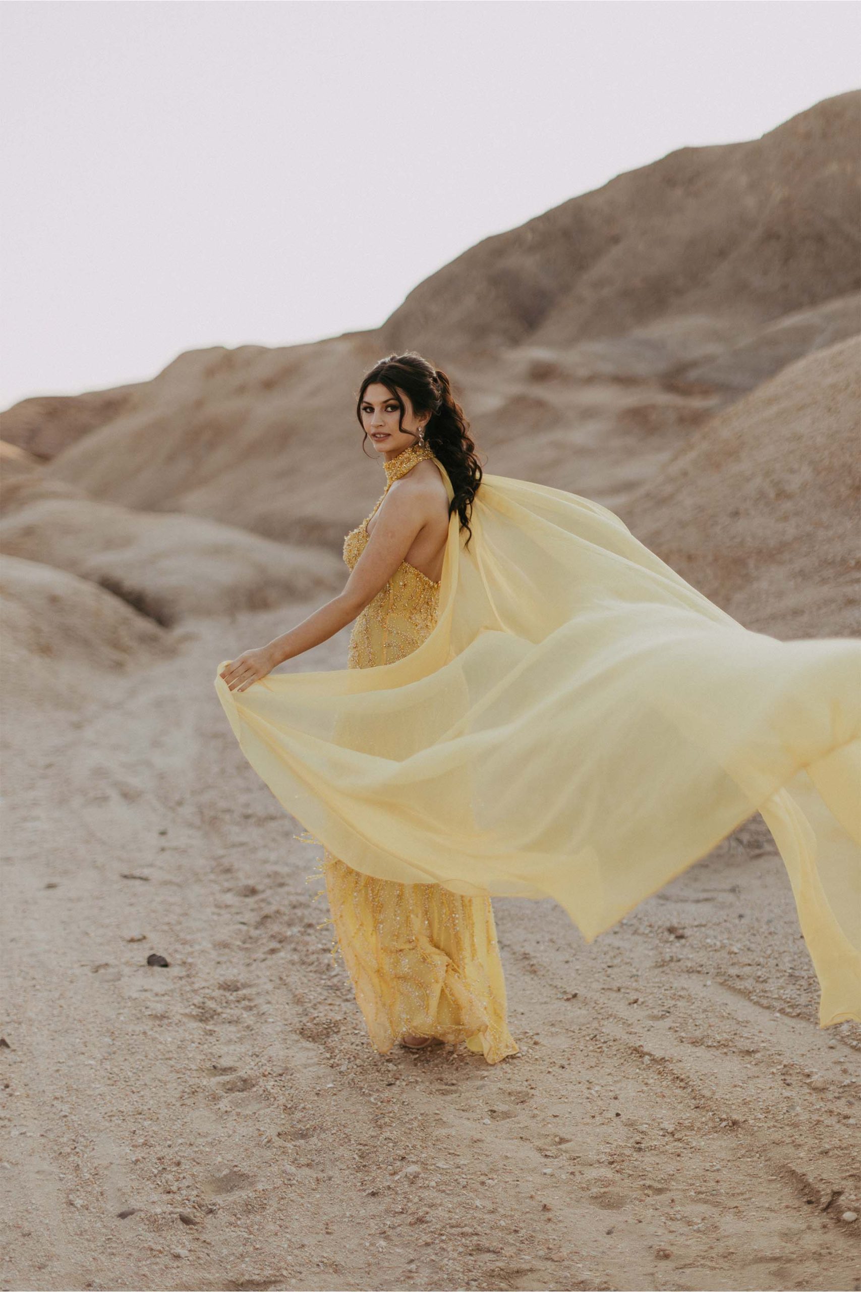 She lit up the evening in a truly unforgettable custom gown—a red carpet showstopper in every sense. Crafted from exquisite beaded embroidered tulle, the fabric was hand-dyed to a vibrant, sun-kissed yellow and adorned with delicate beaded scatters, applied by hand to add rich texture and luminous depth. The final touch? A dramatic detachable cape that added movement, elegance, and just the right amount of flair to this spectacular creation.